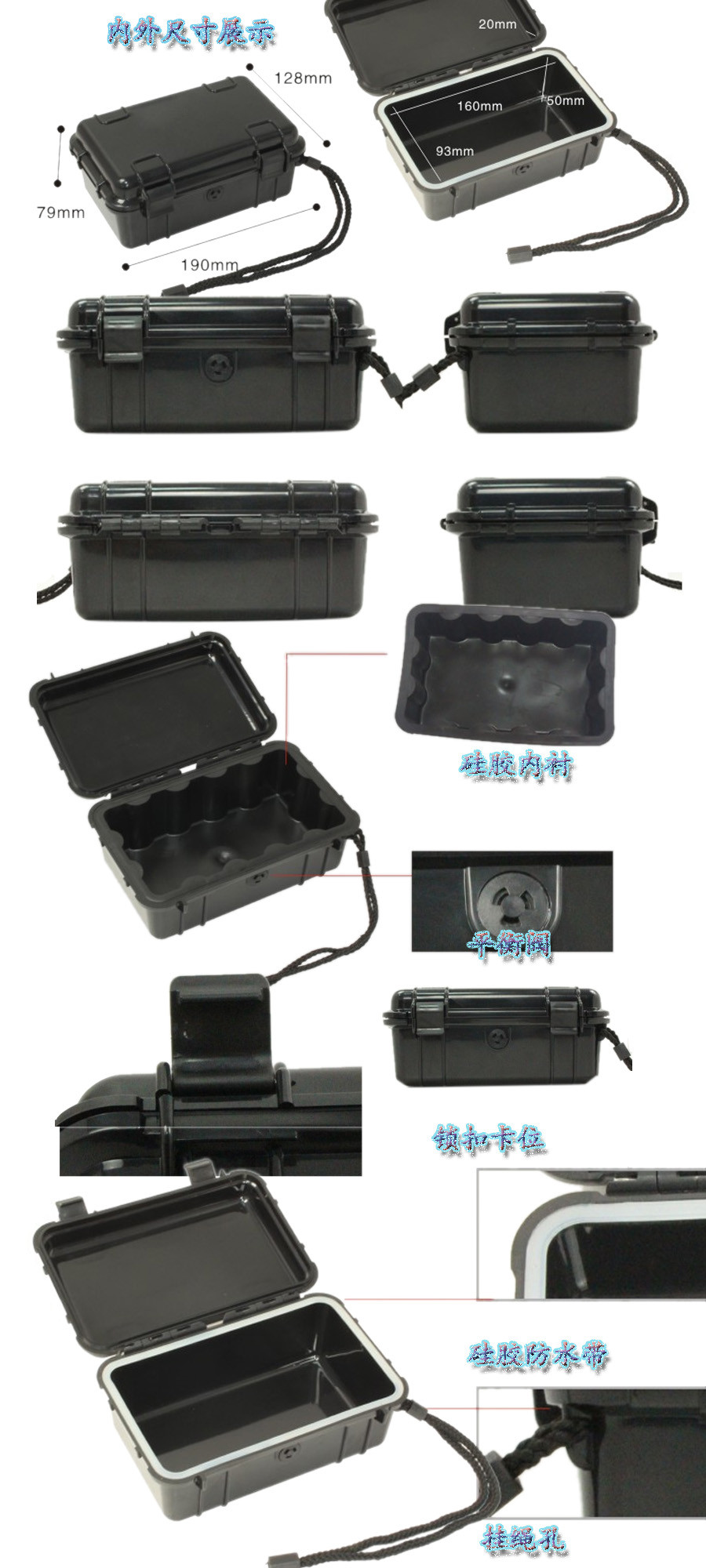 簡要說明:廣泛用于傳媒、公安、消防、軍隊、航空、戶外攝影、野外考察、科學探測等眾多領域的高端儀器、儀表。具有高強度、高抗壓沖擊、防潮、絕對密封、防塵、防水等特點。產(chǎn)品材質:ABS原料,箱體采用高抗沖擊的高分子聚合材料一體注塑成型,密封采用扁型彈性發(fā)泡密封橡膠條,確保防水氣密,所有較軸均采用不銹鋼材質。