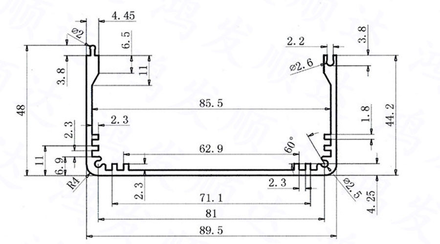 【產(chǎn)品材料】:6063擠壓鋁型材